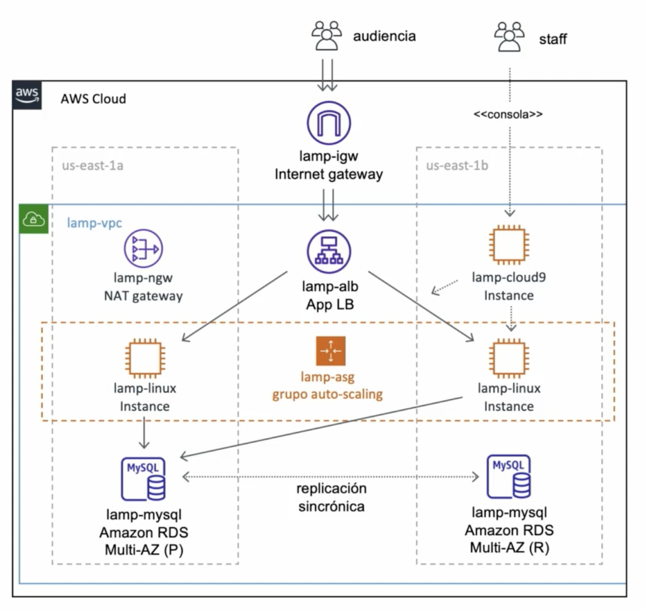 En esta sección mostraremos como realizar la implementación de la siguiente arquitectura de 3 capas típica.